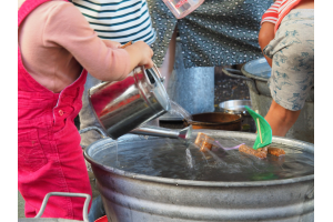 Mit Wasser, Gefässen und viel Freude wird geschöpft, ausprobiert und entdeckt.